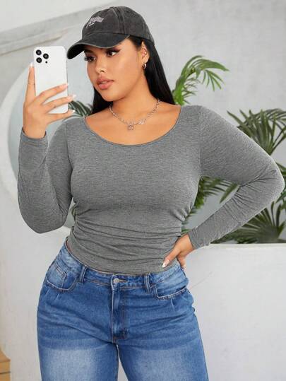 SHEIN EZwear 大尺碼淺灰色針織修身t恤 - 淺灰色 - 查看 1