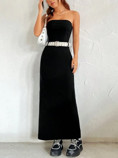 SHEIN EZwear 女式無肩帶無腰帶連身裙 - 黑色 - 查看 1
