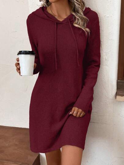 SHEIN LUNE 落肩袖抽繩連帽毛衣洋裝 - 紫紅色 - 查看 1