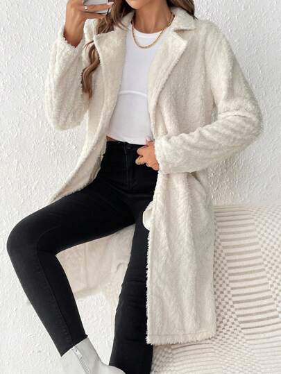 SHEIN Frenchy 女款單排扣毛絨外套 - 杏色 - 查看 4