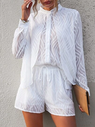 SHEIN Frenchy 素色前紐扣襯衫和短褲
