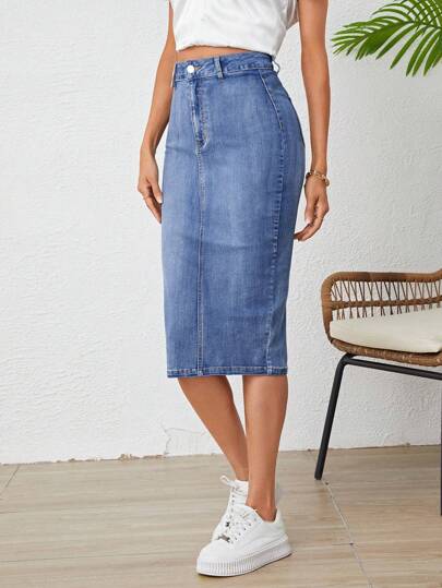 SHEIN Frenchy 後背開衩牛仔半身裙