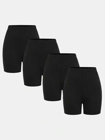 SHEIN Girlism 青少年女孩四件套合身休闲纯色短裤套装 - 黑色 - 查看 1