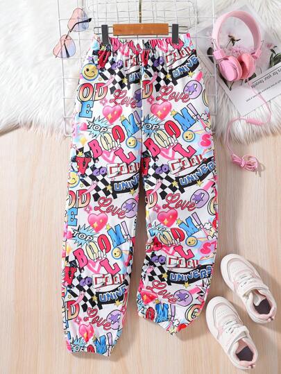 SHEIN 初中女孩字母與心形印花運動褲 - 彩色 - 查看 1