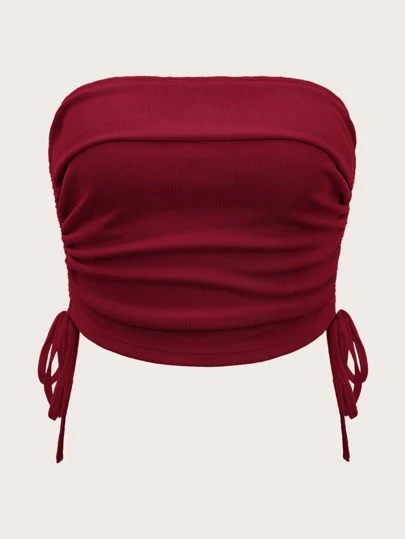 SHEIN ICON 側抽繩褶邊抹胸上衣 - 酒紅色 - 查看 1