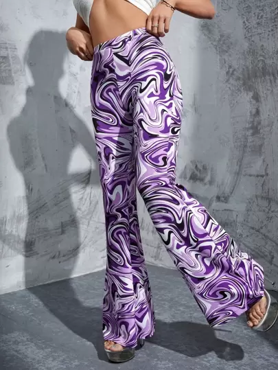 SHEIN ICON 大理石圖案喇叭褲