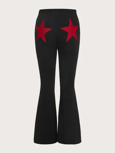 SHEIN ICON 大碼星星印花喇叭褲 - 黑色 - 查看 1