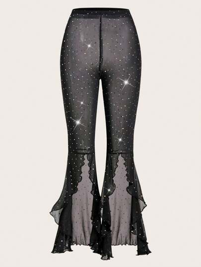 SHEIN ICON 女款水鑽開衩下擺網眼長褲