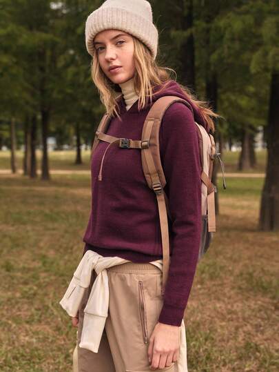 SHEIN In My Nature 女士纯色常规版型插肩袖连帽毛衣 - 咖啡棕 - 查看 8