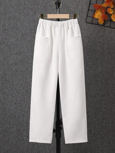 SHEIN 男大童雙口袋彈性腰帶長褲 - 白色 - 查看 1