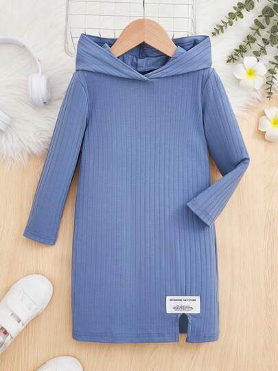 SHEIN 女小童字母補丁細節連帽連衣裙 - 霧霾藍 - 查看 1