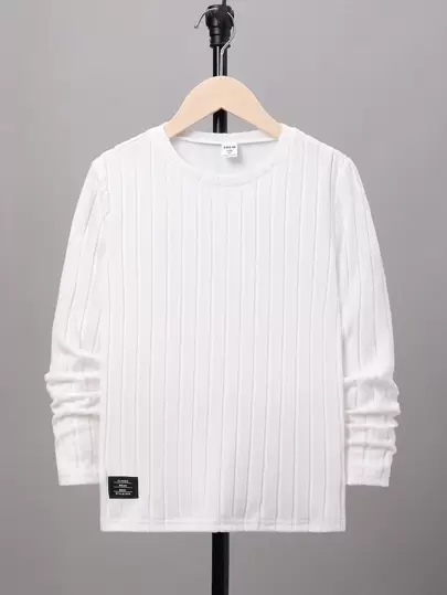 SHEIN 男童图案印花圆领长袖 T 恤 - 白色 - 查看 4