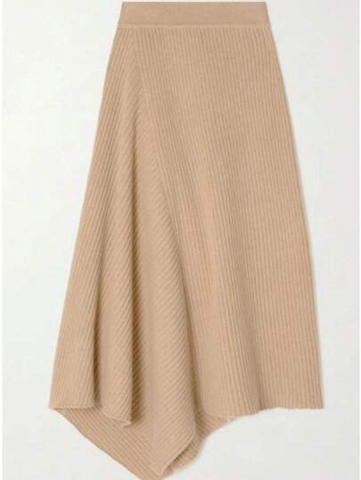 SHEIN LUNE 休闲舒适针织毛衣裙,秋冬 - 卡其色 - 查看 1