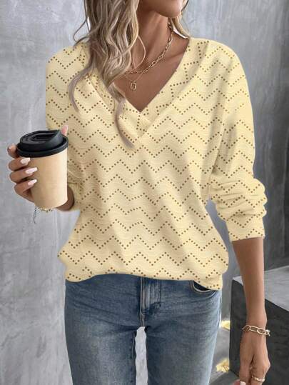 SHEIN LUNE 休闲宽松女士长袖V领T恤,适合日常穿着