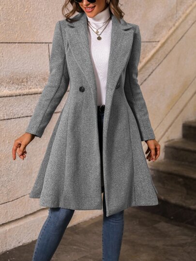 SHEIN LUNE 西裝領雙排釦花呢外套 - 灰色 - 查看 1