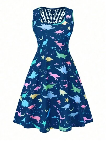 Review: Love the dinosaurs. The dress is a perfect fit.
