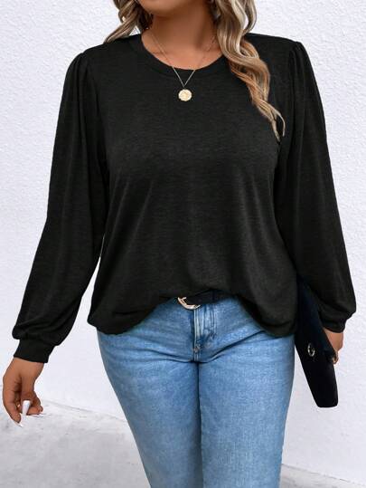 SHEIN LUNE 加大尺碼女裝圓領長袖t恤