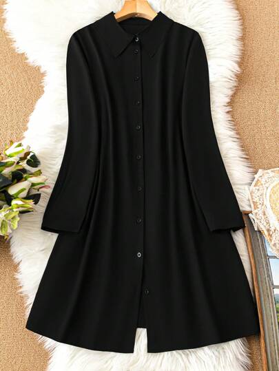 SHEIN LUNE 大尺碼女士夏季純色長袖休閒襯衫連衣裙