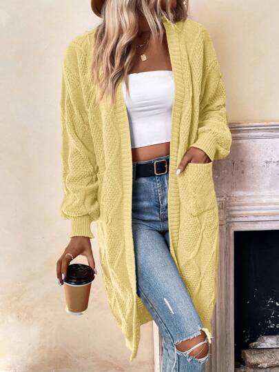 SHEIN LUNE 純色垂墜肩羊毛衫 - 黃色 - 查看 1