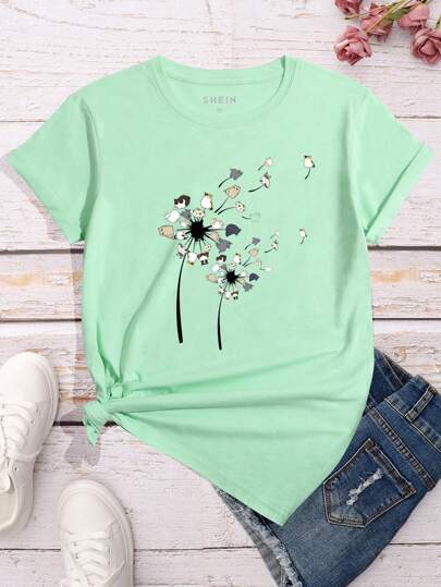 SHEIN LUNE 女款卡通貓印花短袖t恤