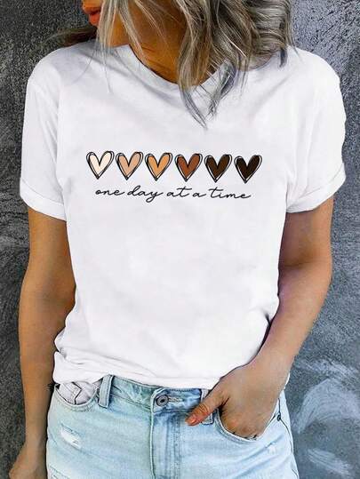 SHEIN LUNE 女士愛心圖案短袖t恤 - 白色 - 查看 1