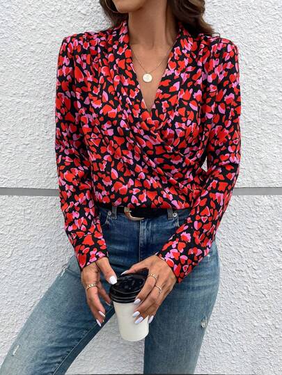 SHEIN LUNE 女款心形圖案裹身襯衫 - 彩色 - 查看 1