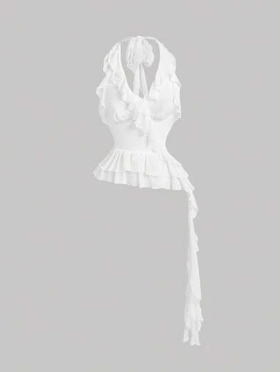 SHEIN MOD 优雅荷叶边下摆多层白色吊带背心