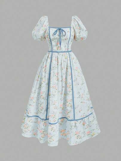 SHEIN MOD 大码碎花撞色滚边连衣裙,浪漫假日