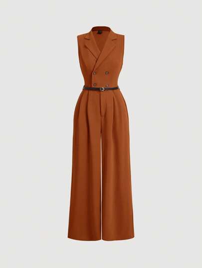 SHEIN MOD 大码女式连体裤,配西装领,锈棕色,优雅 - 鏽棕色 - 查看 1