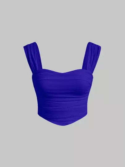 SHEIN MOD 素色褶邊寬肩帶上衣 - 寶藍色 - 查看 1