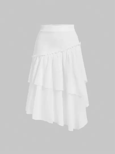 SHEIN MOD 素色荷葉邊半身裙 - 白色 - 查看 1