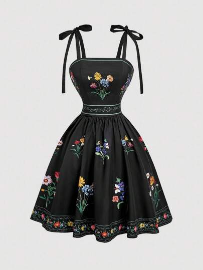 SHEIN MOD 女式花卉印花波西米亚风连衣裙 - 黑色 - 查看 1