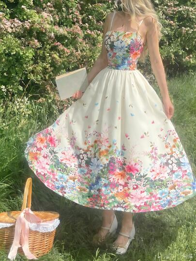 SHEIN MOD 女士碎花中长连衣裙 - 彩色 - 查看 1