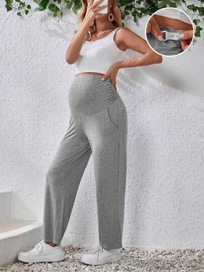 SHEIN 孕婦寬腰帶可調節腰圍斜口袋長褲 - 淺灰色 - 查看 1
