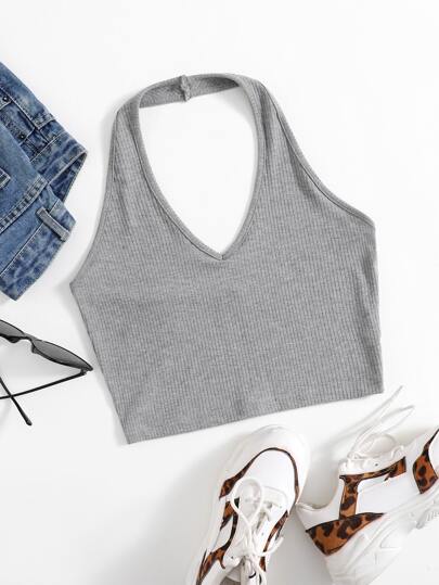SHEIN Muchic 羅紋針織短版繞頸上衣
