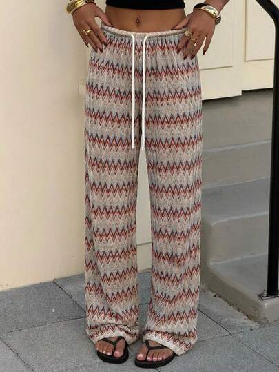 SHEIN Muchic 女士波西米亚风彩色锯齿复古印花抽绳腰宽松阔腿裤