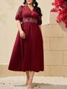 Mulvari 大尺碼露肩燈籠袖,褶皺平板雕花,鬆緊收口褶邊連衣裙