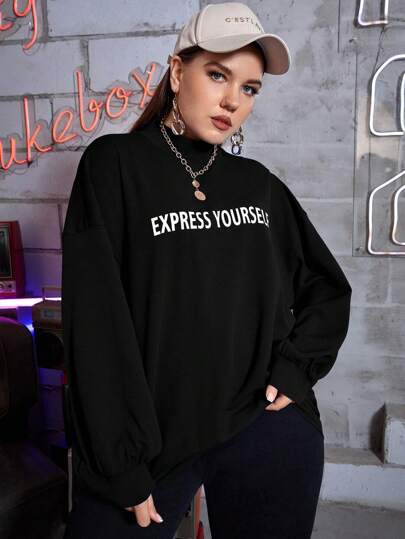 Mulvari 大碼字母圖案小高領落肩袖運動衫 - 黑色 - 查看 1