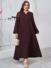Al Najma 加大码拼色前扣长袖简约长袍,端庄优雅的阿拉伯长裙,适合旅行/休闲/居家/度假,长袍长袍