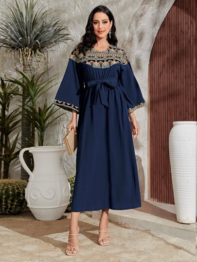 Al Najma 幾何印花荷葉袖繫腰帶連衣裙 - 彩色 - 查看 4