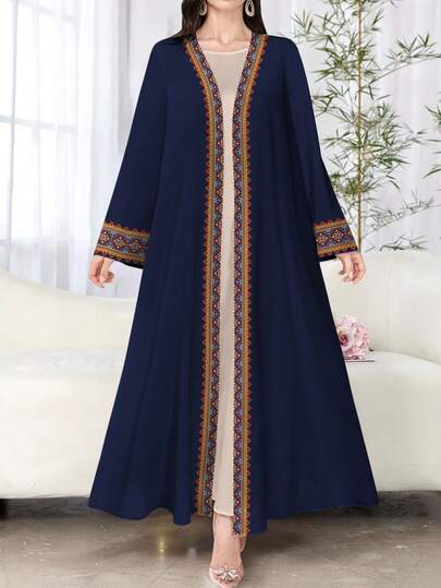 SHEIN Najma 女式花卉印花优雅长袖开衫,优雅的阿拉伯长袍风格,春秋季 - 彩色 - 查看 1