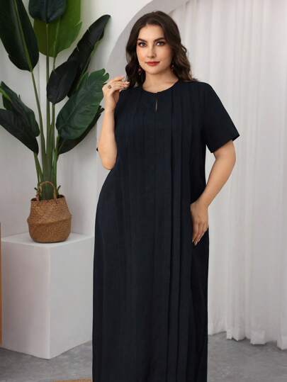 SHEIN Najma 女士宽松休闲传统阿拉伯风格长裙,夏季 - 寶藍色 - 查看 1