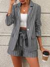 SHEIN LUNE 條紋印花西裝領西裝外套&紙袋腰附腰帶短褲