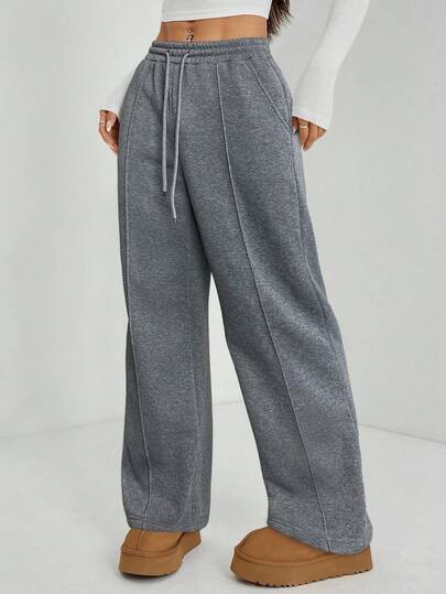 SHEIN PETITE 女士秋季鹅卵石纹直筒运动裤 - 灰色 - 查看 1