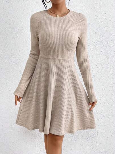 SHEIN PETITE 女款圓領羅紋插肩長袖連身裙