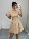 Rafferiza 优雅V领泡泡袖复古星空印花荷叶边下摆连衣裙,春夏