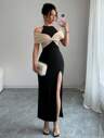 Rafferiza 纯色露背蝴蝶结荷叶袖高开衩修身优雅春夏度假约会长裙