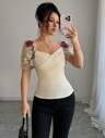 Rafferiza 女式优雅开叉袖闪亮花朵蕾丝花边系腰连衣裙