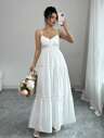 Rafferiza 女式方领泡泡袖前系带后背镂空腰部喇叭形连衣裙