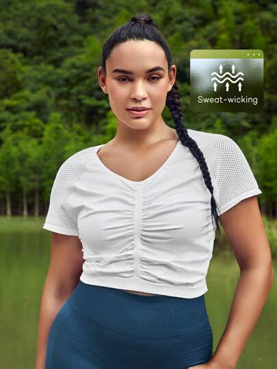SHEIN Rhythm Era 大碼前收褶短款運動T恤